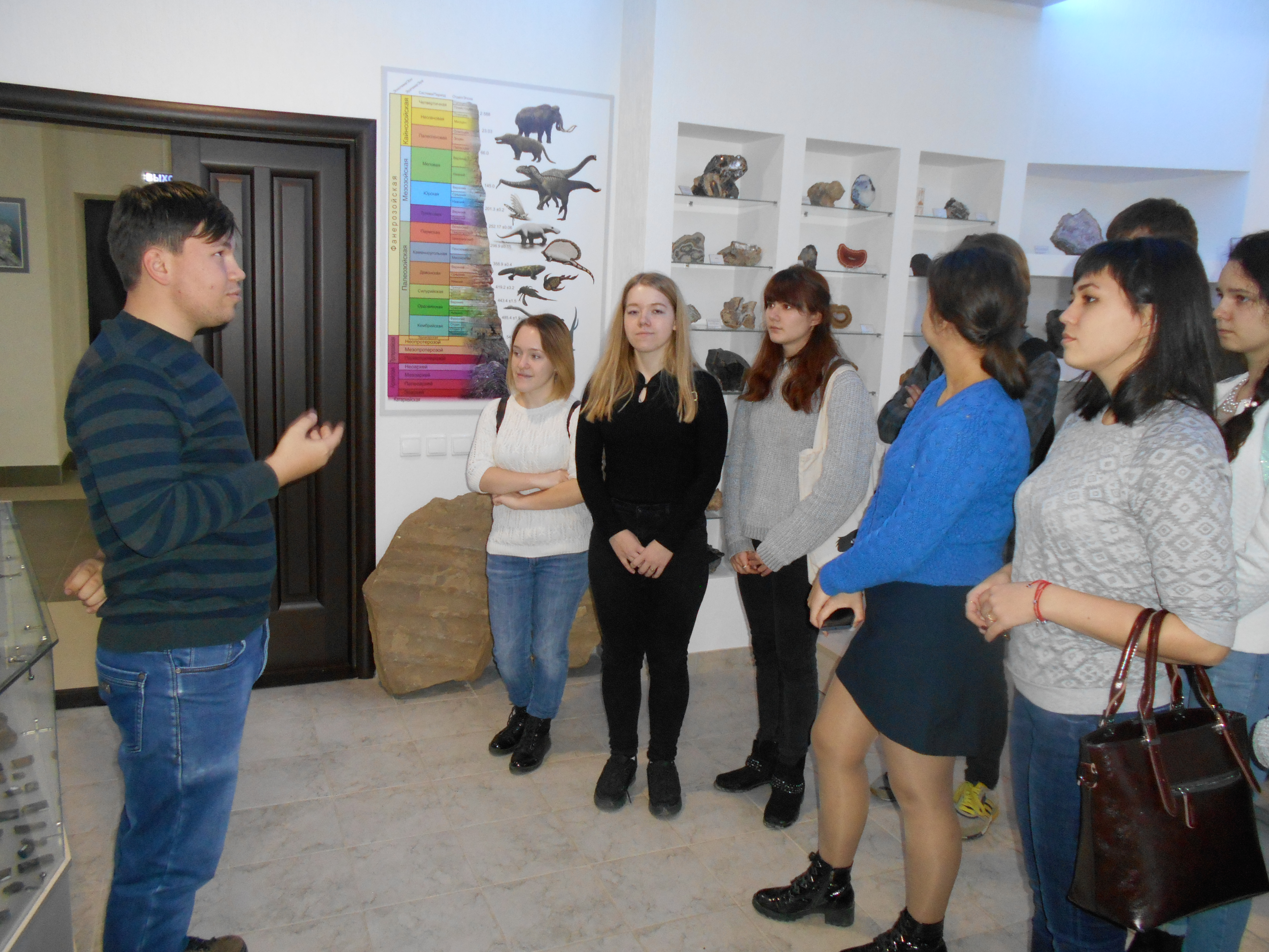 9 ноября учебная группа с1-СЗС11 вместе с куратором Федоровым М.В., доцентом кафедры ТСК, посетили музей естествознания СГТУ. Экспозиция музея эволюции Земли и жизни сегодня размещена в современных помещениях главного корпуса университета на 2-м этаже 25 корпуса. Студенты познакомились с экспозицией музея и прослушали увлекательную лекцию об истории возникновения жизни на Земле, об экспедициях по Саратовской земле, рассмотрели выставку геодезических приборов, раритетные издания учебников и книг прошлого столетия, коллекции минералов и экзотических бабочек. Основой музейной коллекции стали более 1500 образцов, собранных в разные годы, профессором Олегом Смилевцом, а также ряд образцов из коллекции заведующего кафедрой геоэкологии и инженерной геологии Алексея Иванова и доцента кафедры ГИГ Ивана Яшкова.