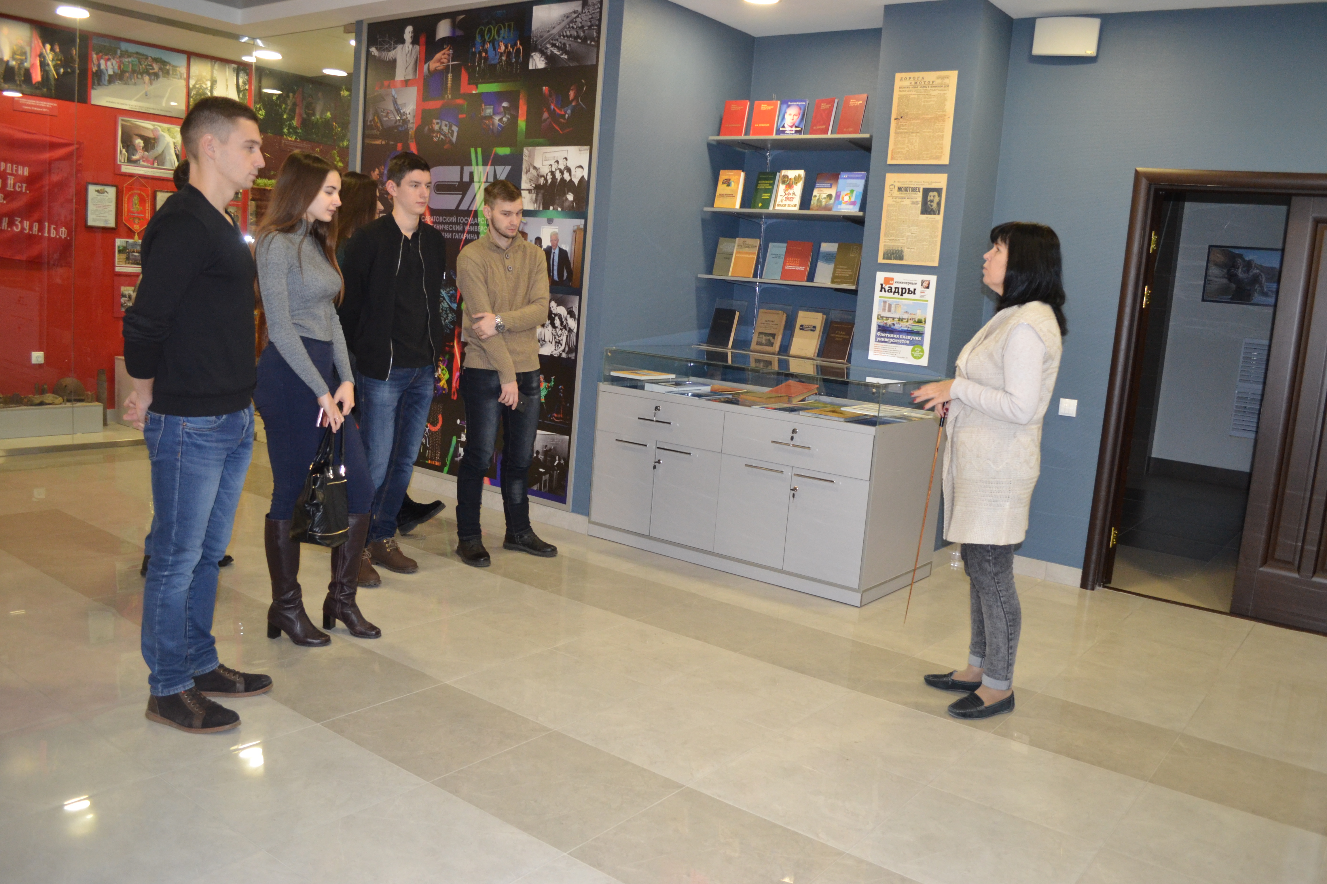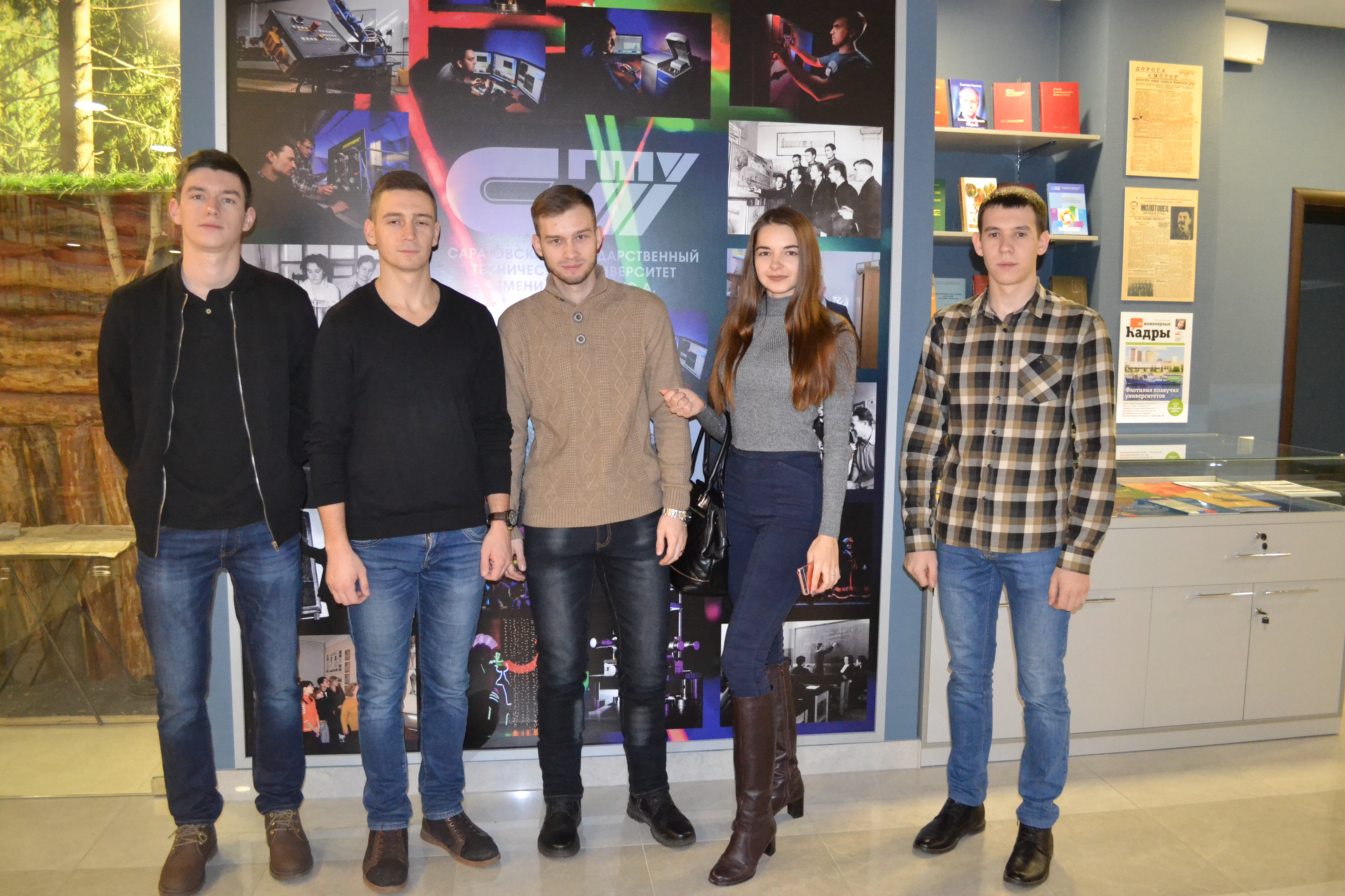 30 ноября учебная группа б2-СТЗС31 вместе с куратором Кривулиной Эльвирой Федоровной, доцентом кафедры ТСК,  посетили музей истории СГТУ. Экспозиция музея истории СГТУ сегодня размещена в современных помещениях главного корпуса университета. Студенты познакомились с экспозицией музея и прослушали увлекательную лекцию об истории возникновения университета, его первых руководителях, выдающихся преподавателях и студентах, о работе в годы Великой Отечественной войны и её участниках – преподавателях и выпускниках.