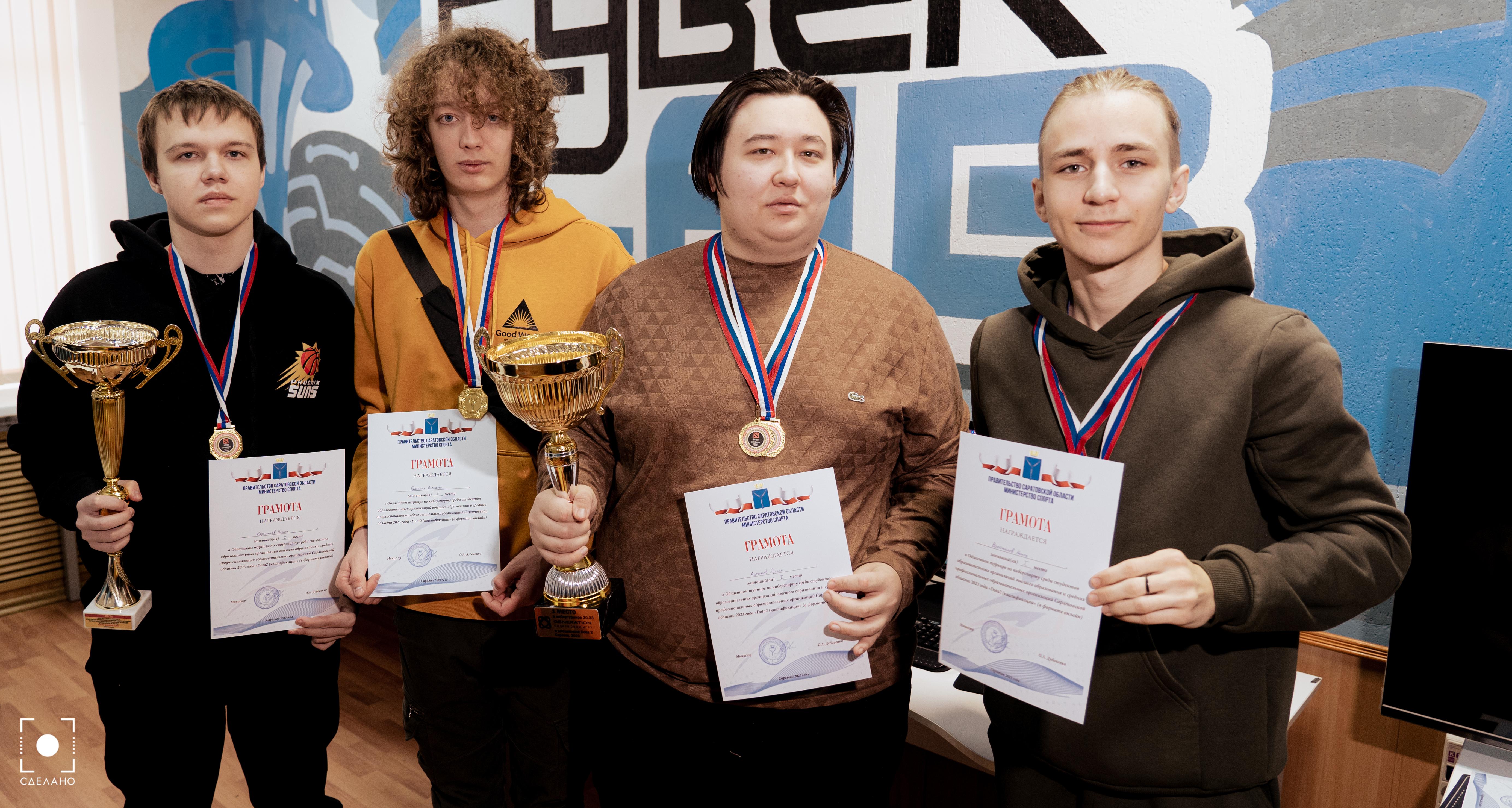 - 1 место в квалификационном турнире от Министерства молодежной политики и спорта по Саратовской области по дисциплине «Dota 2»;