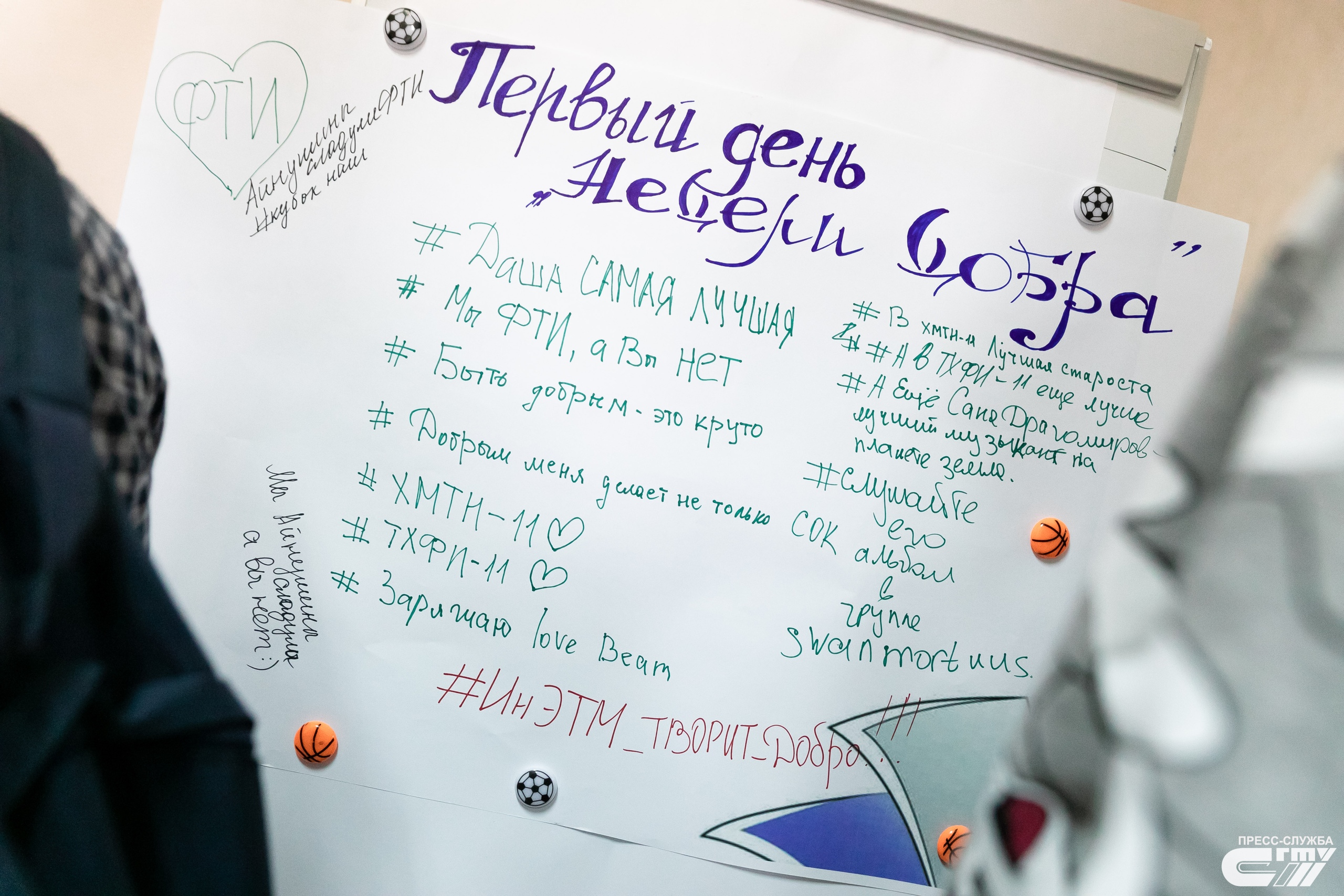 В первый день проведения акции «Неделя Добра» все желающие студенты и сотрудники могли сфотографироваться с имеющимися хэштегами или придумать свои.