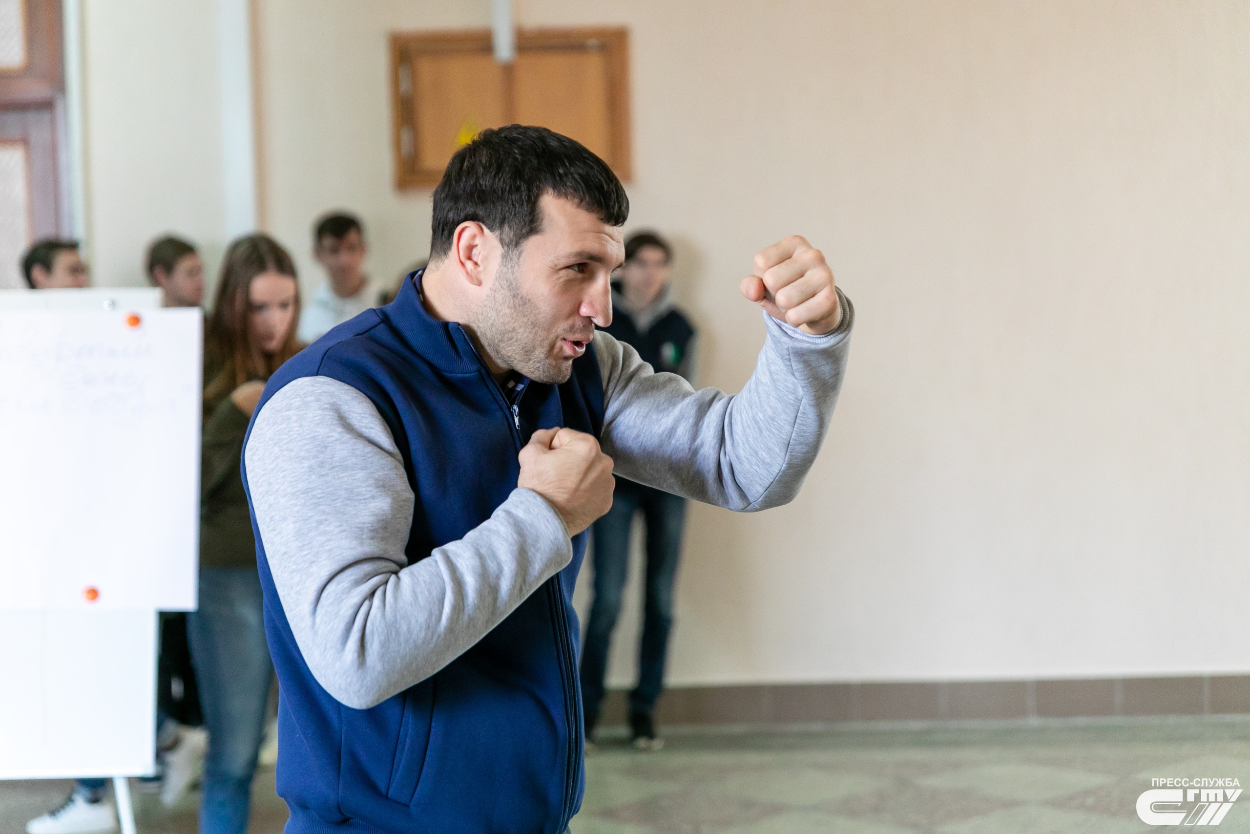 Сегодня в рамках акции «Неделя добра» прошел День спорта. Политех посетил Даци Дациев – чемпион мира по кикбоксингу. Он рассказал о себе, ответил на вопросы студентов, провел зарядку и сфотографировался со всеми желающими.