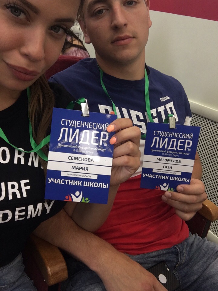 От СГТУ имени Гагарина Ю.А. в Приволжской окружной смене принимают участие председатель профбюро студентов ИнЭТМ Семенова Мария и активист УРБАС Магомедов Гази.