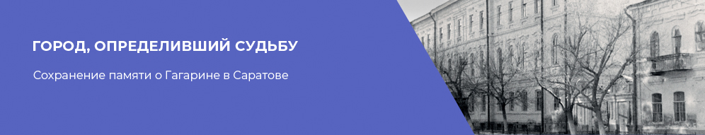«Город Саратов, - сказал Гагарин , - я по праву могу считать своей второй родиной, городом моей юности - здесь я учился в индустриальном техникуме... здесь же я учился в аэроклубе ДОСААФ, здесь началась моя крылатая юность. Наконец, на саратовскую землю я возвратился из космоса».