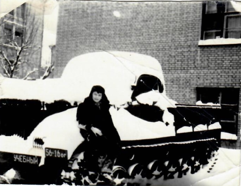 В 1964 году решением Саратовского обкома ВЛКСМ нашему пионерскому отряду первому в Саратовской области присвоили почетное звание «Пионерский отряд имени Гагарина Ю.А.». Для этого мало изучить биографию героя, создать именные стенды, оформить классную комнату, надо было иметь отличные и хорошие показатели успеваемости и активности во всех школьных делах. Тогда и возникла идея сделать сборник письменных и творческих работ: рассказов пионеров нашего класса о встречах с людьми, хорошо знавшими Юрия Гагарина, посещениях аэроклуба и техникума. Были так же и стихи. Зимой 1964 года мы, четыре друга, были направлены классным руководителем в индустриальный техникум (ныне Профессионально-педагогический колледж СГТУ имени Гагарина Ю.А.) с заданием встретиться с преподавателями, которые учили Юрия Гагарина, и записать их воспоминания, сделать фотографии и оформить литературный сборник для школьного музея. Задание мы выполнили успешно, узнали много интересного о своем герое, но нас, мальчишек, заинтересовала военная техника на территории учебного заведения. Оказалось, что учащиеся техникума в период обучения получали воинскую специальность для автомобильных войск и имели отсрочку от призыва. На военном тягаче меня и сфотографировал мой друг Колька своим фотоаппаратом «Смена».