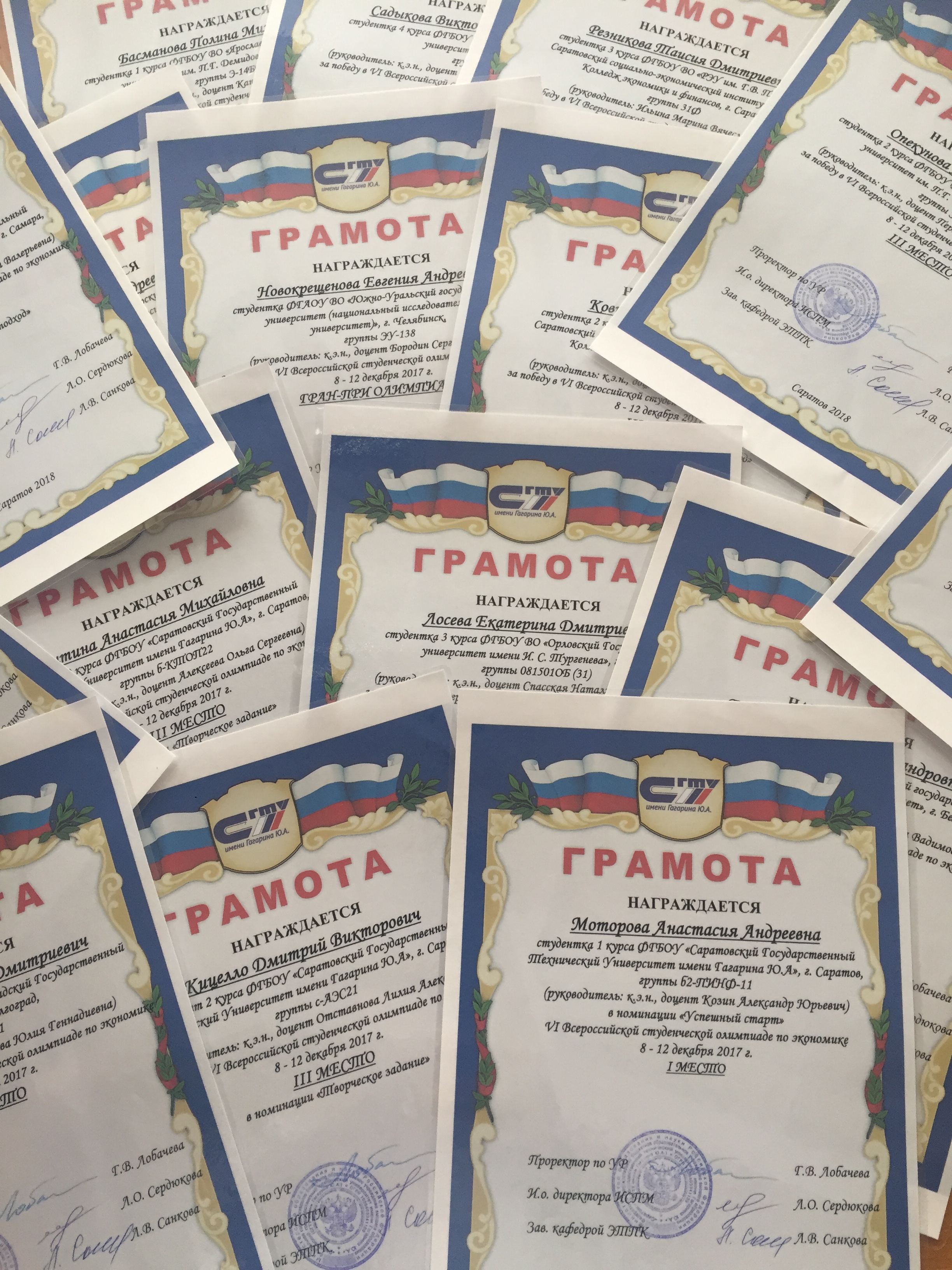 Подведены итоги VI Всероссийской заочной студенческой олимпиады по экономике, проходившей 8-12 декабря 2017 года на кафедре «Экономика труда производственных комплексов» ИСПМ СГТУ имени Гагарина Ю.А.