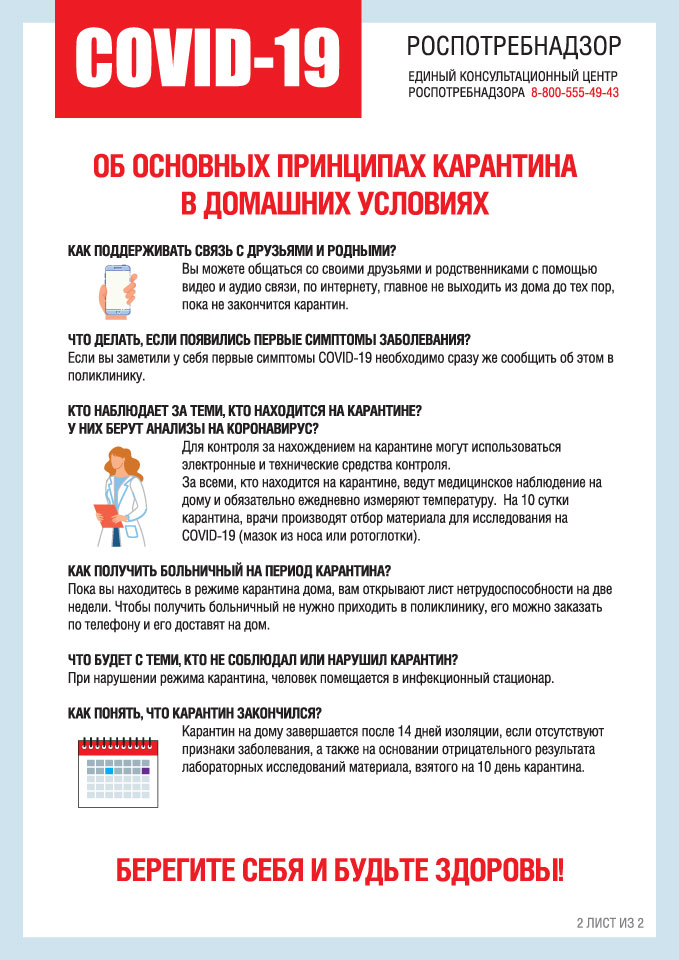 При возвращении из любого иностранного государства туристам необходимо провести 14 дней в режиме карантина — не ходить на работу, в больницу и даже за продуктами. Такой режим обязателен для всех, даже при отсутствии симптомов заболевания. Если же вы почувствовали недомогание, то не стоит ехать в поликлинику — вызывайте врача на дом. В качестве профилактики чаще мойте руки с мылом, используйте антисептик, ограничивайте контакты с больными людьми и меньше трогайте свое лицо. Оформить больничный лист можно дистанционно на сайте Фонда социального страхования.