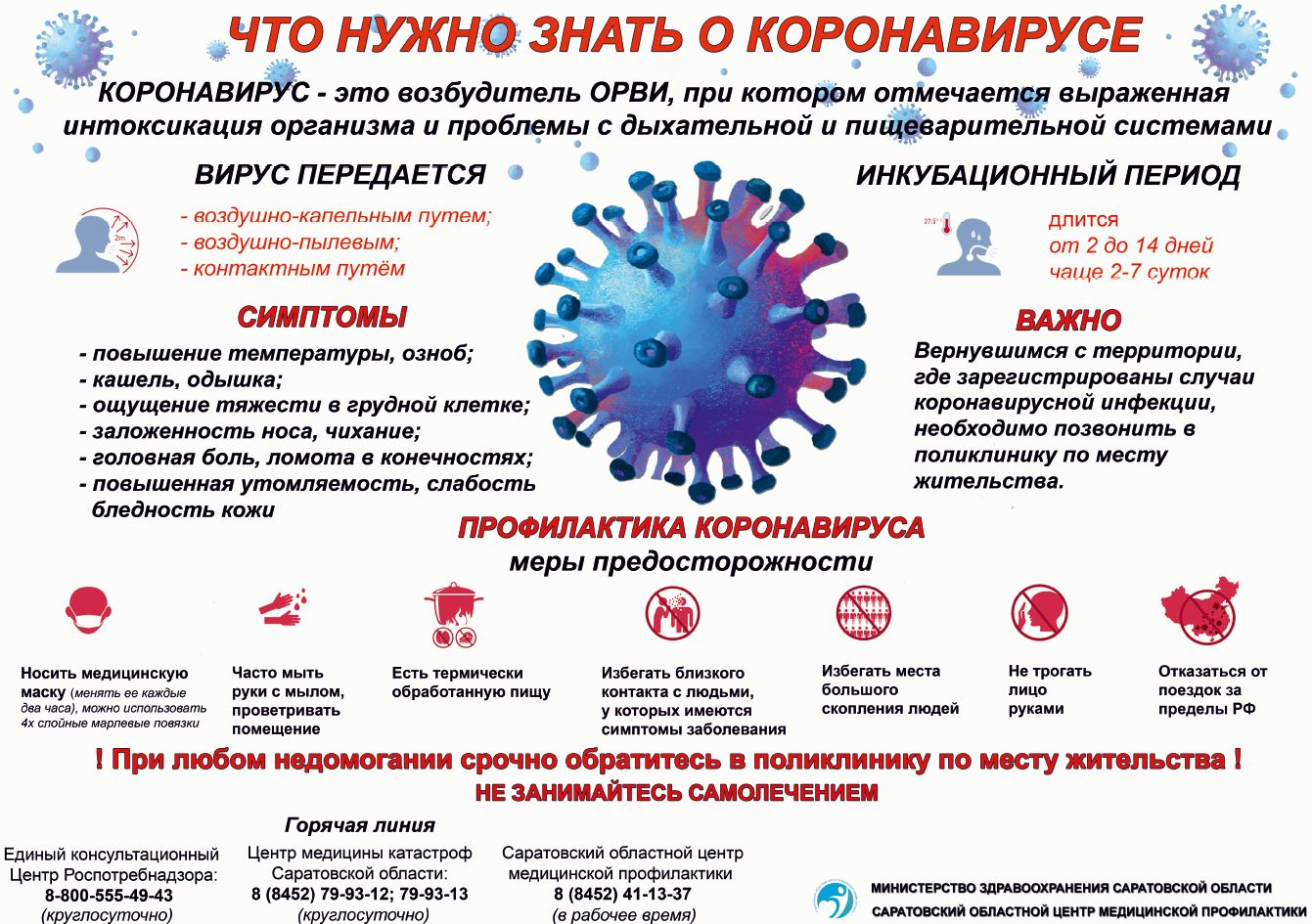 Министерство здравоохранения выпустило памятку и видео «Что нужно знать о коронавирусе», в которых саратовцы найдут следующую информацию: