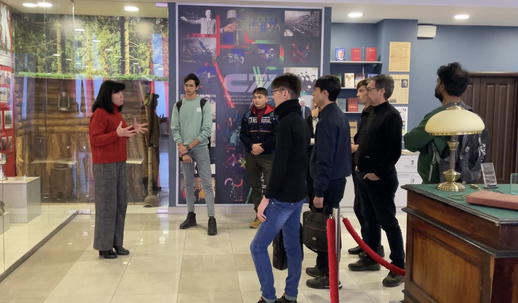 Продолжается цикл ознакомительных экскурсий для новых слушателей курсов русского языка Саратовского государственного технического университета имени Гагарина Ю.А. Ребята из Индии, Йемена, Гаити,Турции, Марокко, Ирака, Туркменистана и Афганистана посетили музей истории СГТУ и музей естествознания.