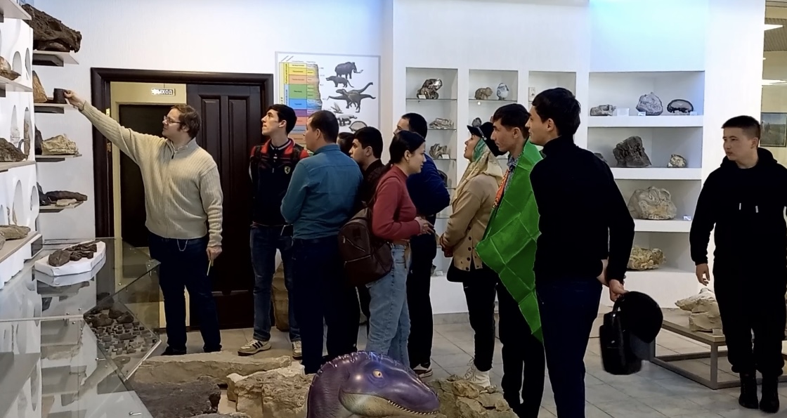 Иностранцы узнали о достижениях вуза, его руководителях, выдающихся ученых, выпускниках, их роли в истории страны и региона. В музее естествознания ребята прослушали лекцию об истории возникновения жизни на Земле, рассмотрели выставку геодезических приборов, коллекции минералов.