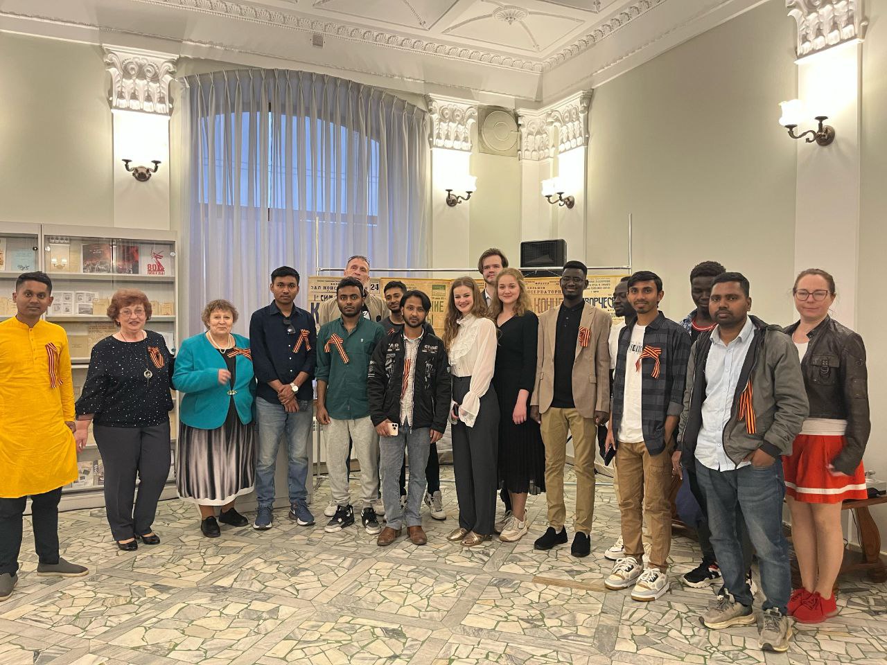 Иностранные слушатели курсов русского языка как иностранного из Судана, Бангладеш, Индии приняли участие во Всероссийской акции «Библионочь», которая прошла на площадке областной универсальной научной библиотеки. В этом году «Библионочь» приурочена к 80-летию Победы в Великой Отечественной войне и проходила под девизом: «Нет в России семьи такой, где б не памятен был свой герой».