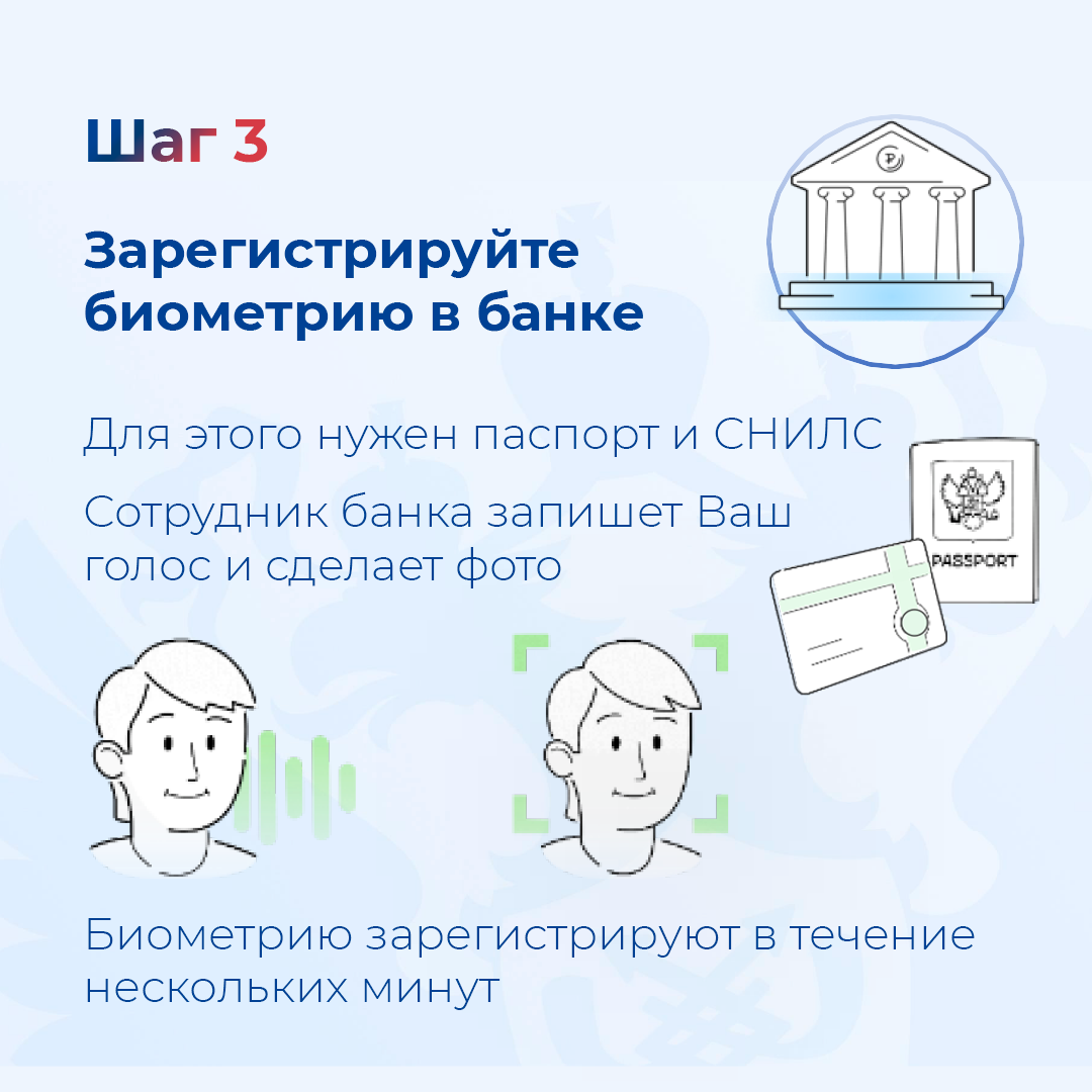 • Зарегистрировать биометрию в банке