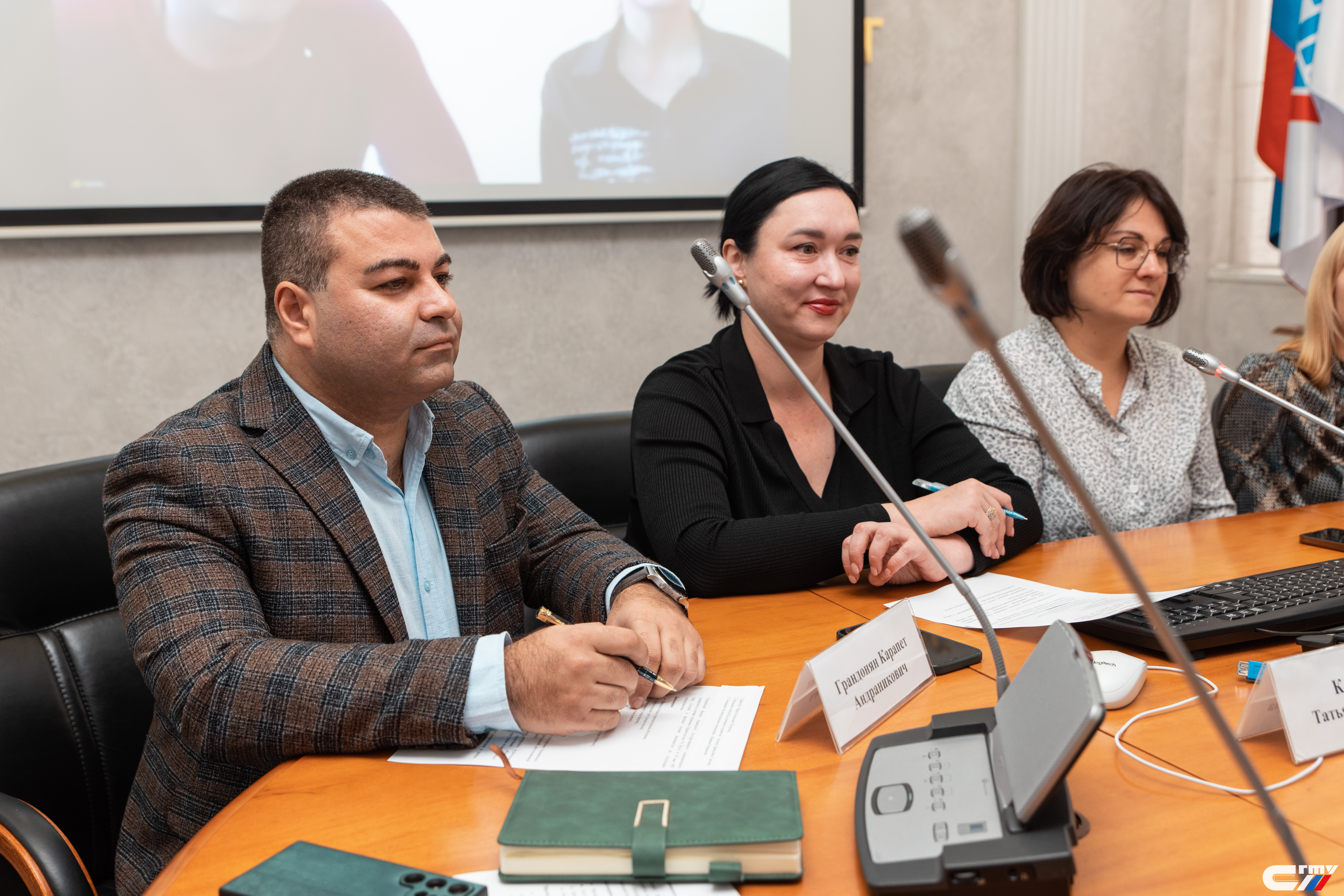 От СГТУ на встрече выступили: проректор по международным связям Татьяна Касаева, начальник учебно-методического управления Надежда Лисицкая, директор института прикладных информационных технологий и коммуникаций Светлана Кумова, директор социально-экономического института Карапет Грандонян, заместитель начальника УМК Марина Еремеева, начальник отдела информационной и академической мобильности УМК Ульяна Шакирова.