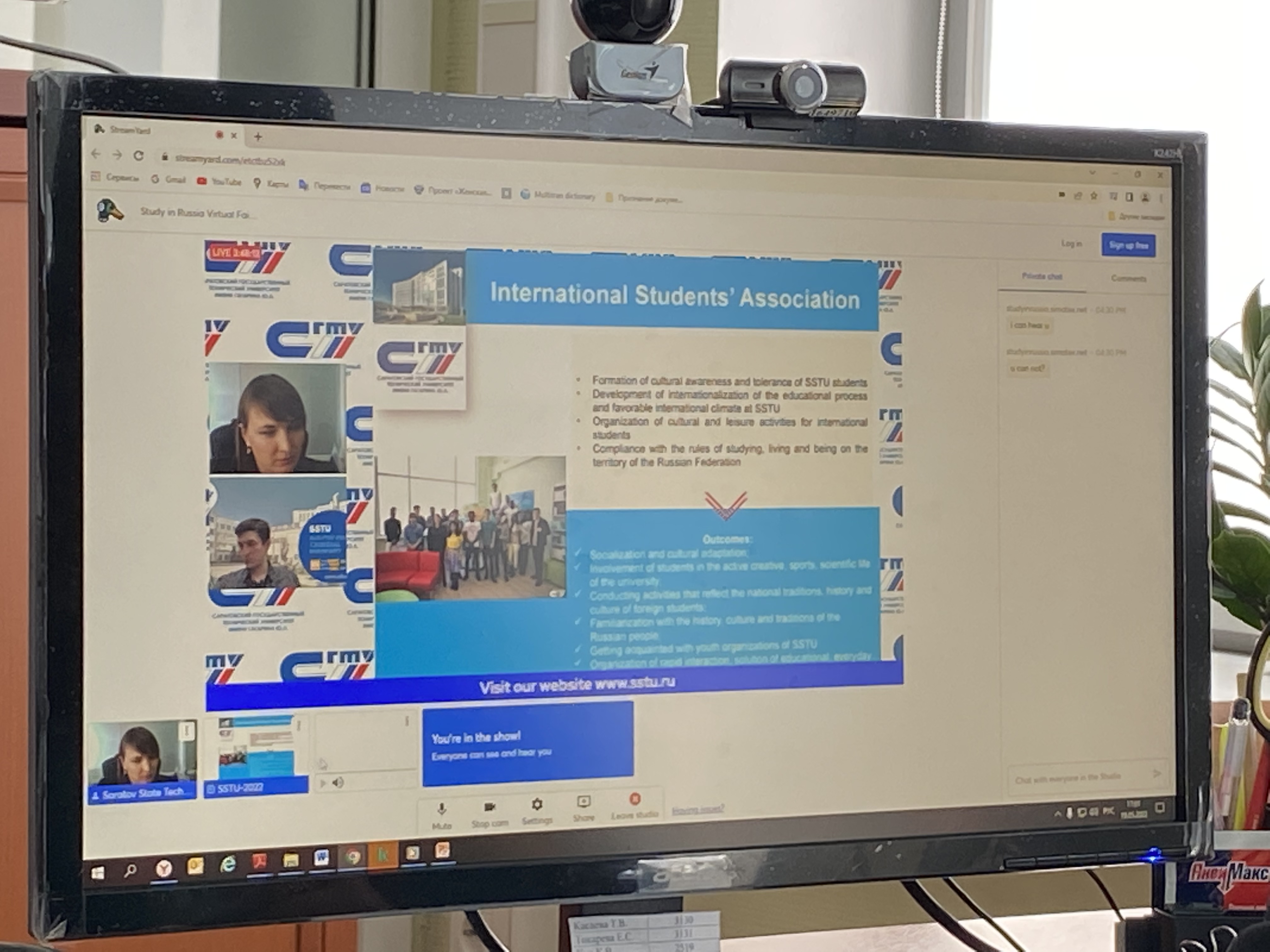 Саратовский государственный технический университет имени Гагарина Ю.А. принял участие в виртуальной интерактивной образовательной ярмарке-выставке SIMATEX Virtual fairs «Инженерные и гуманитарные науки». Для вуза был выделен виртуальный стенд, на котором была представлена наглядная информация о специальностях, направлениях подготовки, научно-исследовательских центрах и инфраструктуре.