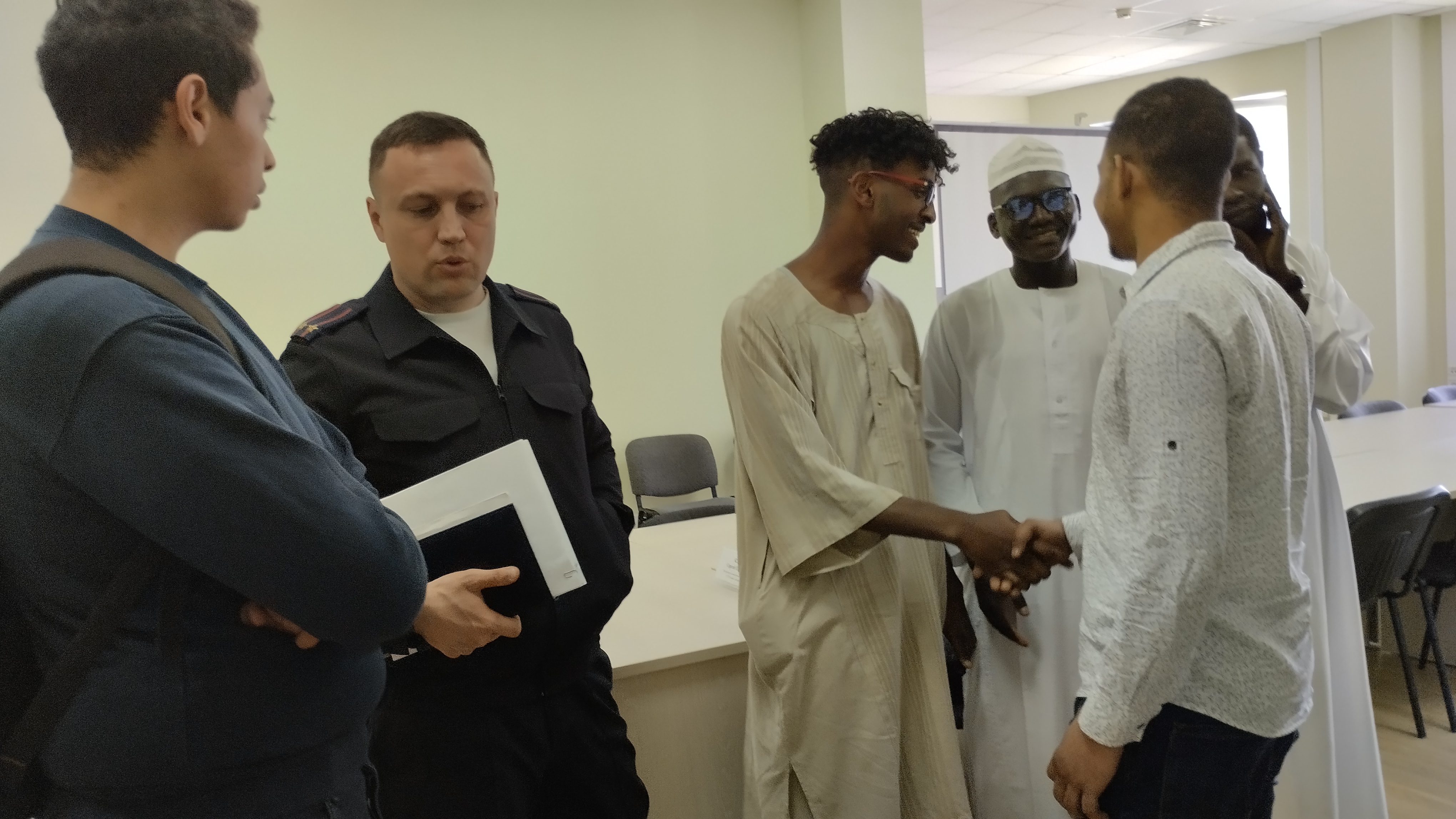 Студентов проинформировали об обязанности соблюдения миграционного законодательства РФ в части постановки на миграционный учет, своевременной подачи документов на продление визы, прохождения обязательного медицинского освидетельствования и дактилоскопической регистрации.