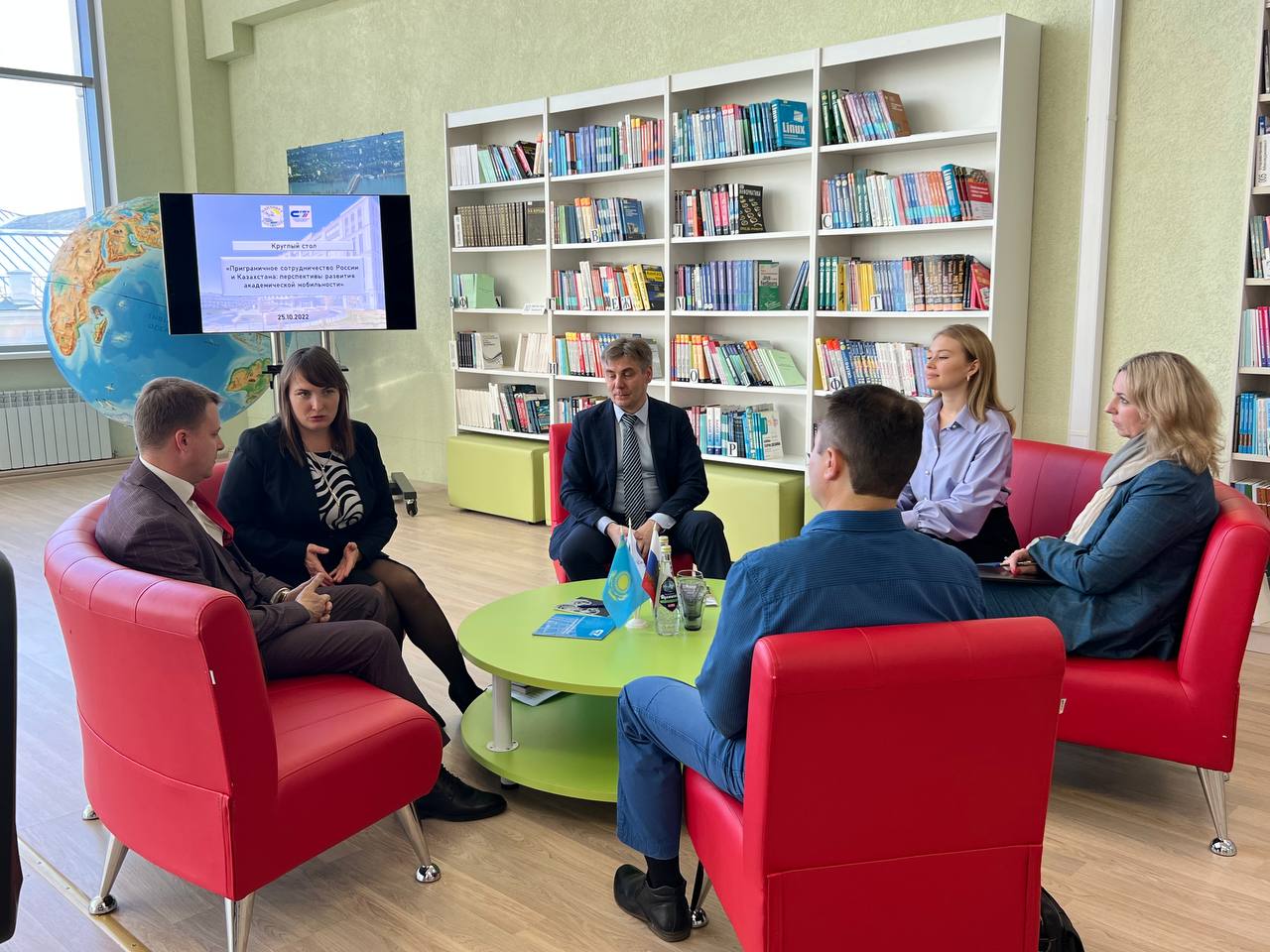 Вчера, 25 октября, в Политехе состоялся круглый стол «Приграничное сотрудничество России и Казахстана: перспективы развития академической мобильности» с участием представителей технического вуза и Западно-Казахстанского университета имени Махамбета Утемисова. Среди них: руководитель отдела международных связей и полиязычия ЗКУ Владислав Зубков, начальник управления международных коммуникаций Политеха Евгения Токарева, заместитель директора СЭИ СГТУ Максим Миронов, заведующая кафедрой «Переводоведение и межкультурная коммуникация» СЭИ Елена Овчинникова, а также сотрудники управления международных коммуникаций.